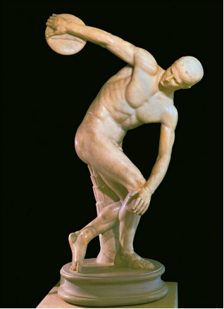 《擲鐵餅者》是希臘雕刻家米隆于約公元前450年雕刻的青銅雕塑,原作已丟失,復制品為大理石材質。