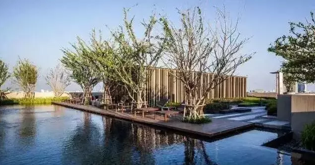 靜態水景一般布置在中心綠地或是其他公共空間。一般是指平坦的成面狀的水域,范圍比較大。