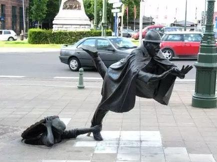 1、《捉弄警察的叛逆少年》,位于比利時(shí)布魯塞爾市中心不遠(yuǎn)的圣約翰廣場(chǎng)。藝術(shù)家Tom Frantzen作品,表現(xiàn)的是一名調(diào)皮的少年從下水道中鉆出抓住了警察的一只腳。